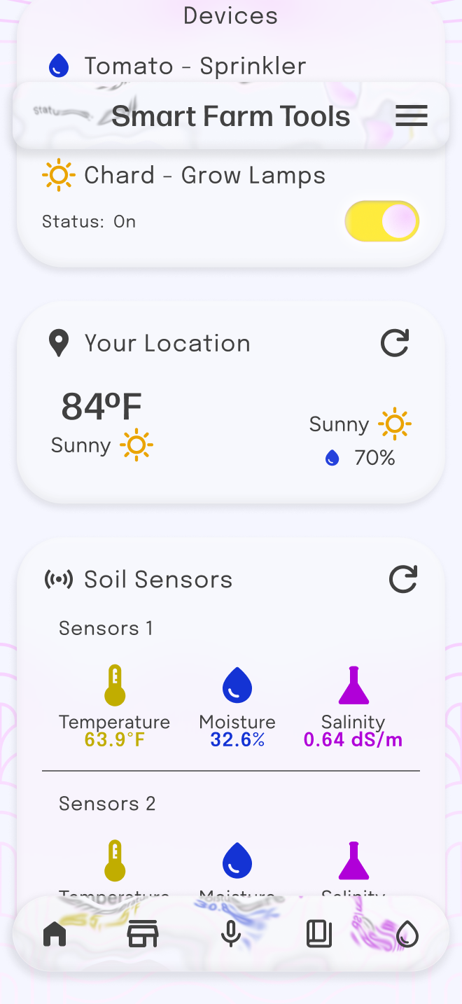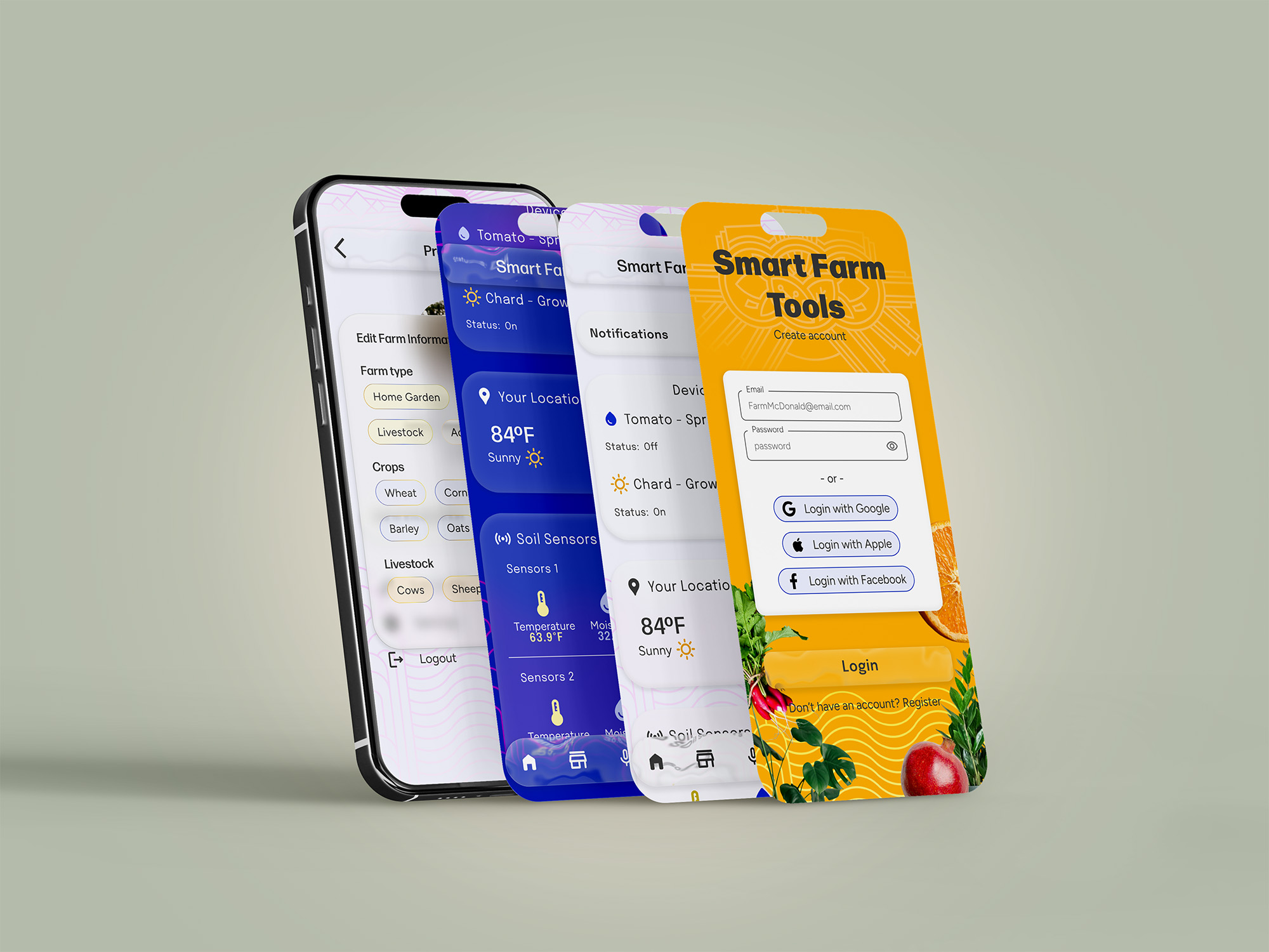 Smart Farm Tools (SFT) is a Seattle-based startup building products for small farms and home gardeners. Their goal was to create a single app that allows users to monitor soil quality, control watering devices, and manage their gardening equipment, consolidating multiple disconnected apps into one intuitive experience. I was brought on as the sole UX and product designer to define their brand and design the accompanying app, including light interactions and animations.